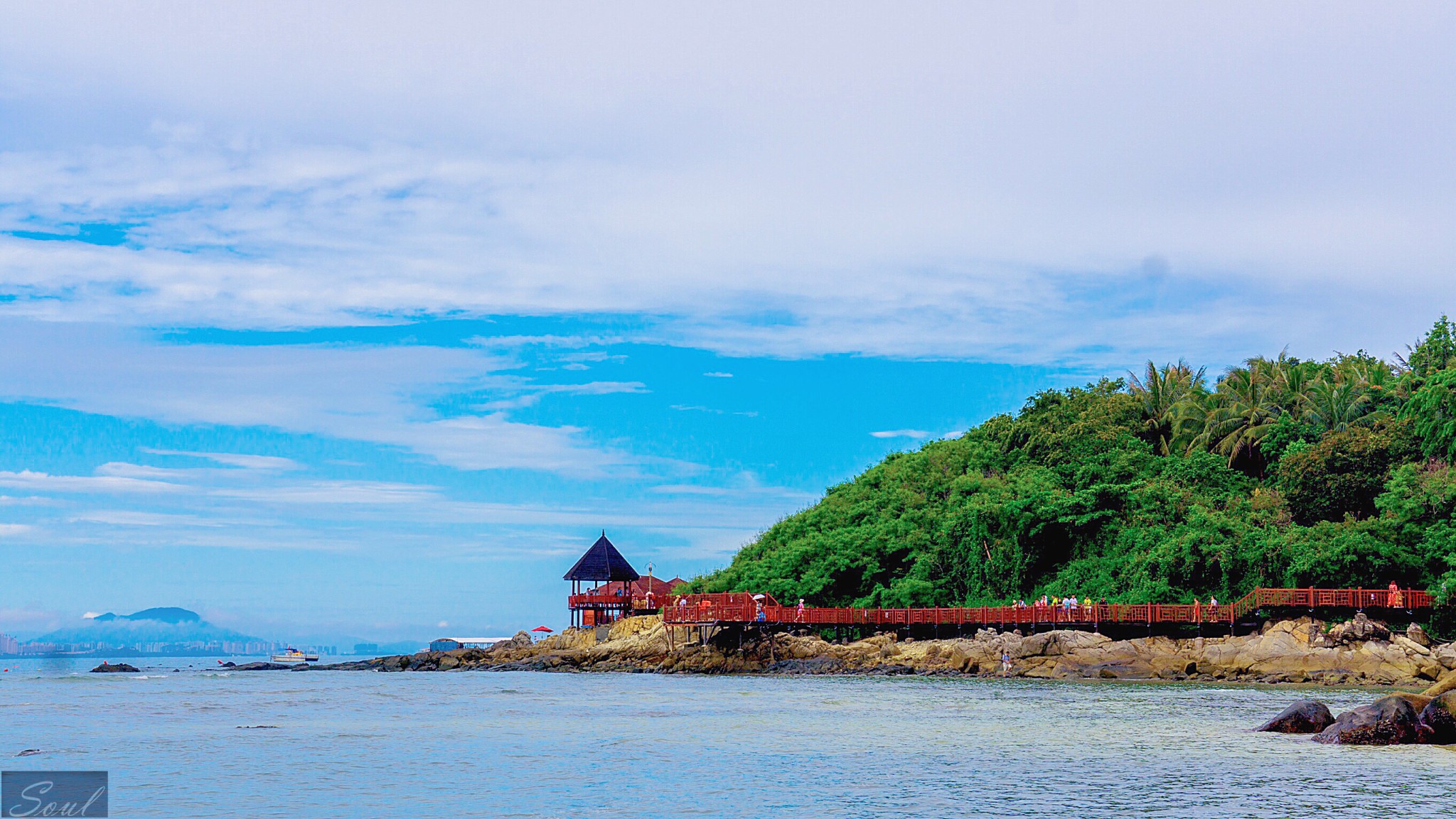 15至20分钟,船大概是20分一班船,最后一班船回来是5点30,上岛最后一班是4点,4点还没有到蜈支洲岛就没有船上岛了。
