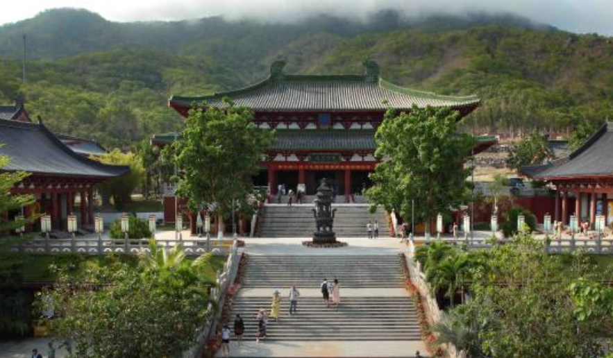 三亚南山寺位于三亚南山文化旅游区内,是一座仿盛唐风格、居山面海的大型寺院。南山寺是已故中国佛教协会会长赵朴初亲临选址,经国家宗教局批准,于1995年11月11日奠基,1998年4月12日建成。