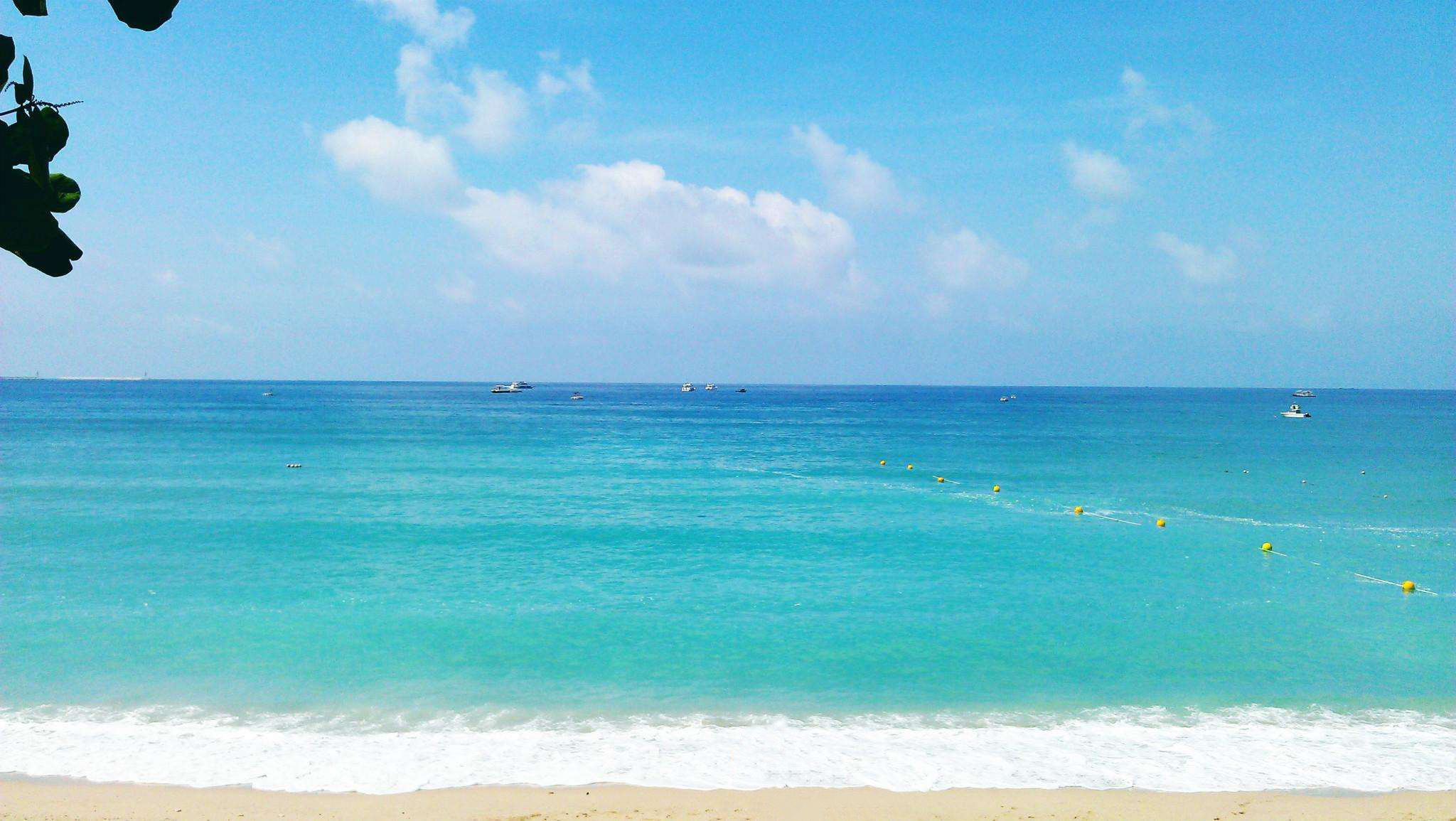 大东海三面环山,海岸线长2.9公里,一面大海,一排排翠绿椰林环抱沙滩,蓝天、碧海、青山、绿椰、白沙滩独特之美博得海内外游客的赞叹。