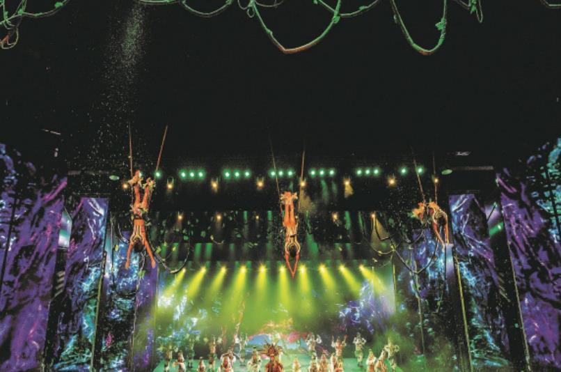 大型歌舞《三亚千古情》立足于三亚长达一万年的恢弘历史长卷,以其崭新的舞台设计使整场演出突破了传统空间与感觉的界限,呈现出诗画般令人目眩神迷的美学感受。360度全景剧幕层出不穷,400平方米的巨型悬空透明膜从天而降,观众伸手与头上的比基尼美女互动。让每一寸角落都满盈着演出怒放的张力,撼动着观众的视觉与听觉神经。