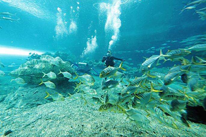 堡礁潜水:从海边下水,是近岸潜水,水深一般3~6米左右,这里有小型的浅水珊瑚,海星,海胆,海参,及浅海热带鱼类,如果投放鱼饵,他们将成群结队的围绕在你身边。