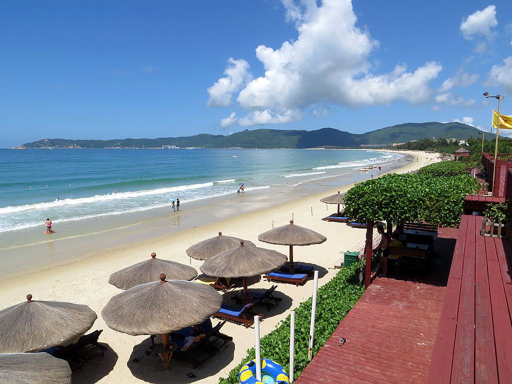 亚龙湾国家旅游度假区是中国海南省三亚市东郊的一处优质热带海滨风景区,距离市中心区约10千米,这是一个月牙形海湾,拥有7千米长的银白色海滩(沙滩),沙质相当细腻。而这里的南海没有受到污染,海水洁净透明,远望呈现几种不同的蓝色,而水面下珊瑚种类丰富,可清楚观赏珊瑚,适合多种水面下活动包括潜水等,令海底成为了当地的旅游的核心。