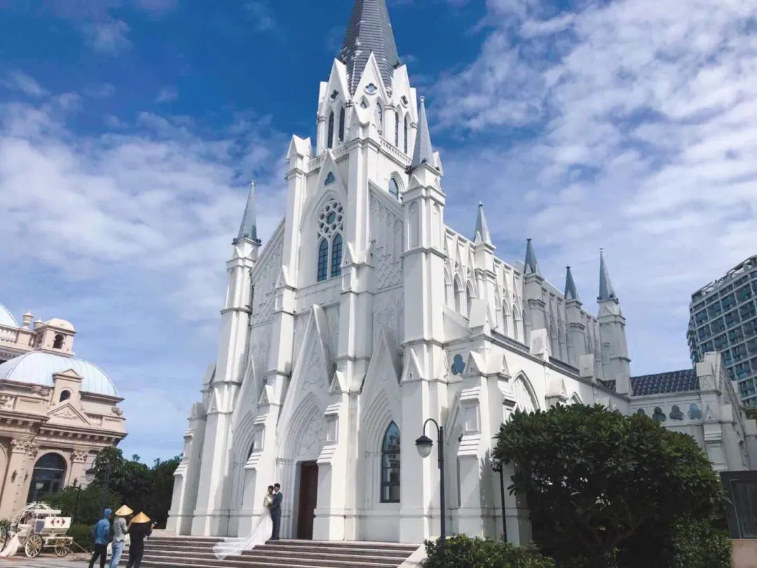 吉庆广场是三亚的小众打卡地,欧式风情的街道,有一种行走在伦敦街头的感觉。巴士、电话亭、小汽车、邮筒、白色教堂,可以拍照的元素有很多,出片率极高。这里也是著名的婚纱照拍摄地,平时会有很多新人在此拍照。