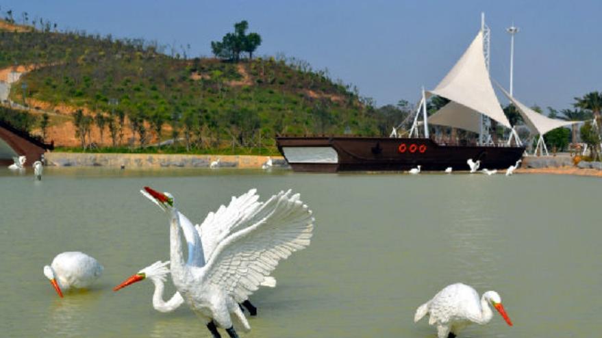 白鹭公园分为椰林风情区、绿岛锦簇区、镜湖银波区、海天一色区、红树迷园区和闲得茗香区等几大区。公园中心的小湖叫“白鹭湖”,约有9万平方米水面积。公园内,白鹭悠然地在园内来回走动,湖边、湖心到处是白鹭,这里俨然成为白鹭的天堂。