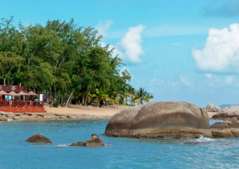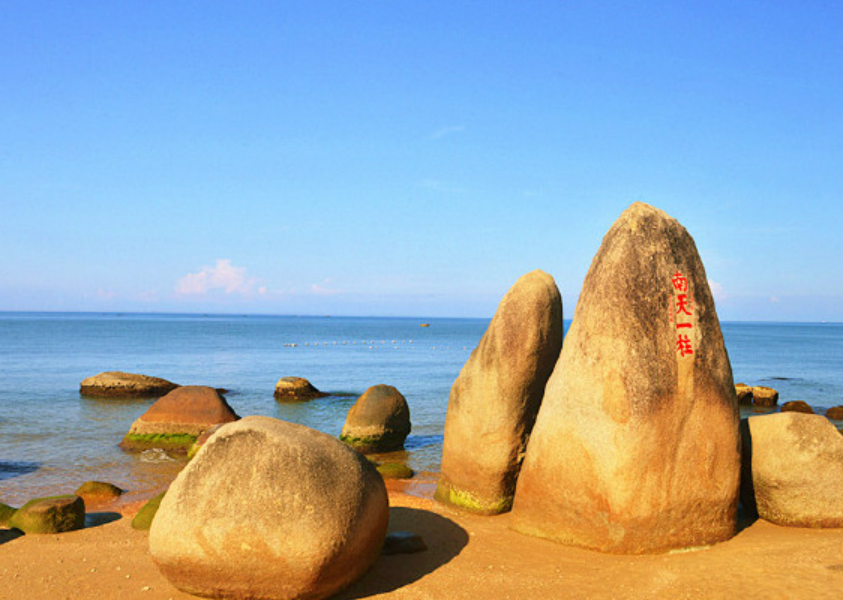 天涯海角位于三亚湾西端,是一片宁静美丽的海滩。海滩上耸立着许多形态各异的岩石,其中有名的是刻有“天涯”和“海角”两块巨石,它们一直被视为爱情的象征,也是三亚标志性的景观之一。