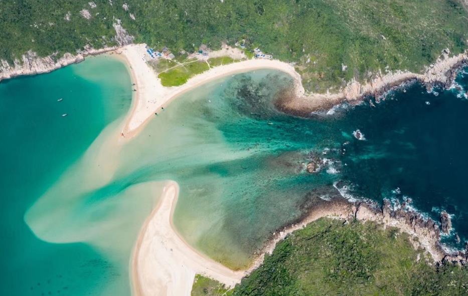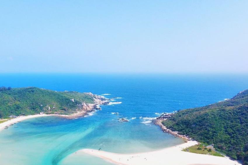 大洲岛又称独洲岭,也叫独珠岭。有二岛三峰,面积4.36平方公里,主峰高289.3米。此岛分为北小岭(北大洲岛),南大岭(南大洲岛),中间有一长800米的弓形银色沙滩相连。