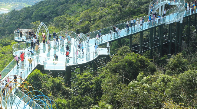 2、观光车游览线:游客沿途可欣赏逐鹿岭、烟波亭、过江龙索桥、千里亭、国家海岸、升官石、龙门石等;在主峰热带天堂园区及亚龙湾大佛石,俯瞰天下第一湾。