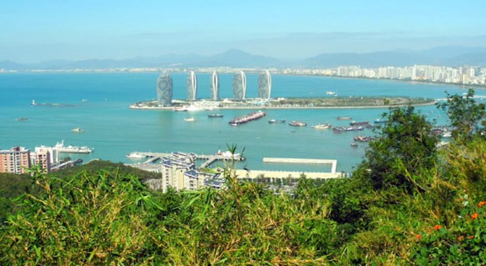 三亚市区三面环山,北有抱坡岭,东有大会岭、虎豹岭和海拔393米的高岭(狗岭),南有南边岭,形成环抱之势,山岭绵延起伏、层次分明;同时,山脉的延伸将市区分成若干青山围成的空间,为城市不同地区提供了各具特色的空间景观环境。三亚面临南海,海湾较多,众多海湾各有佳景。处于市区的大东海、小东海、三亚湾与市民生活的关系最为密切。