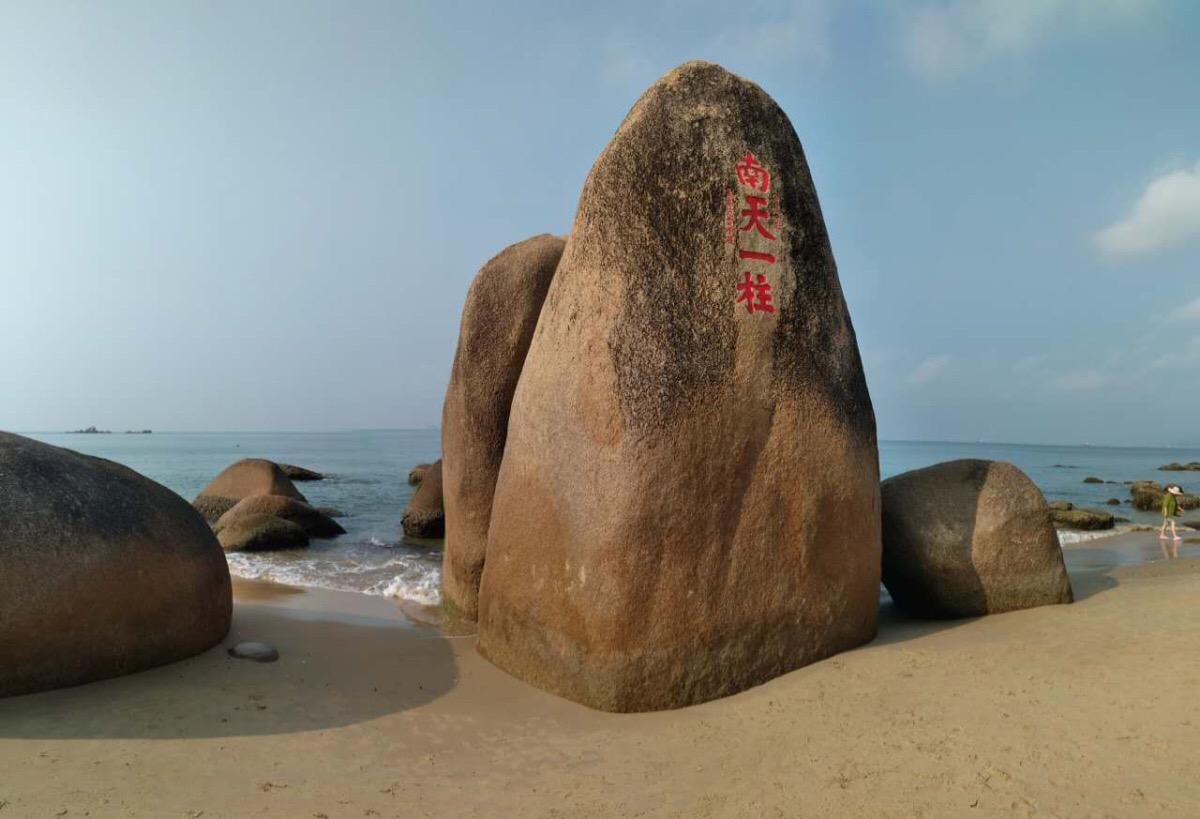 天涯海角游览区,位于海南省三亚市天涯区,临近三亚湾,距主城区西南约23公里处,背对马岭山,面向茫茫大海,是海南建省31年第一旅游名胜,新中国成立70周年海南第一旅游品牌,国家AAAA级旅游景区。景区海湾沙滩上大小百块石耸立,“天涯石”、“海角石”、“日月石”和“南天一柱”突兀其间,沙滩上大小百块磊石耸立,上有众多石刻。清代雍正年间崖州州守程哲所书,勒石镌字“海判南天”,这是天涯海角最早的石刻。