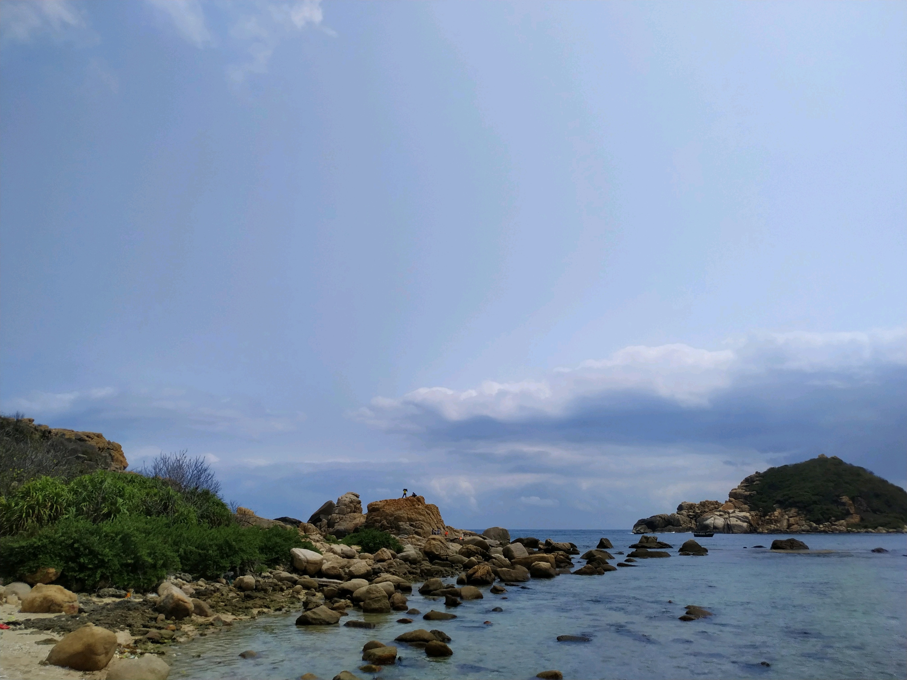 整个弯月状海湾,貌似小亚龙湾,海湾两侧礁石嶙峋陡峭,水深6米~15米左右,海水清澈见底,珊瑚种类丰富,五彩斑斓,形态各异,热带鱼类品种繁多。连着沙滩的海滩礁盘区海洋生物众多,退潮后水深不及膝盖,是赶海的绝佳地;1700米的沙滩,沙子洁白细腻;部队的营房掩隐在野波萝、凤凰树、椰子林中。