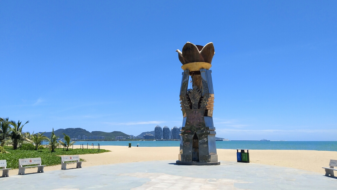 毗邻椰梦长廊,是三亚市火炬传递途经地之一。广场上创意和摇曳多姿的柳叶雕塑,以及以大海中的明月为构思的水池,