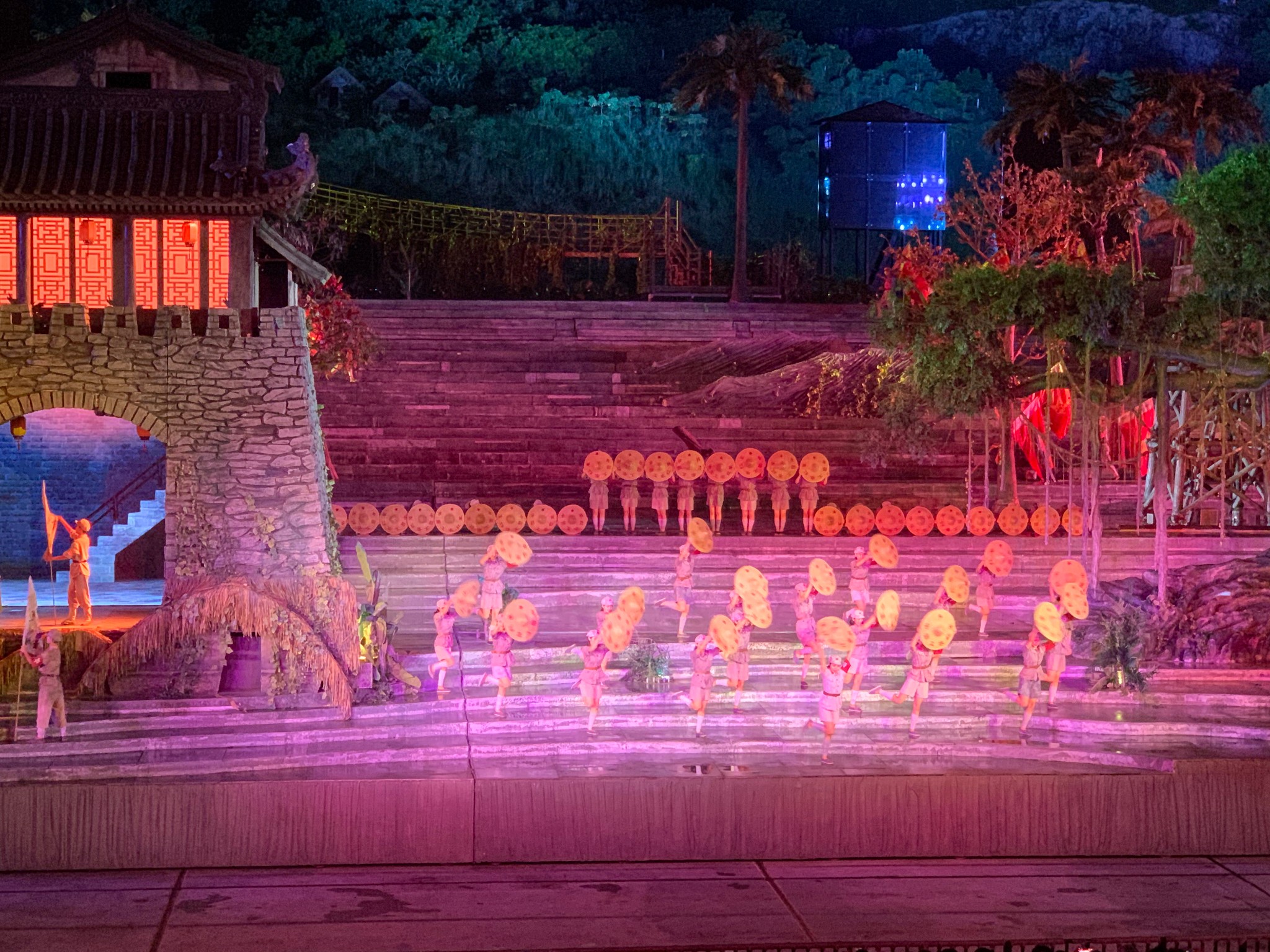 大型椰海实景演出《红色娘子军》是国家实景演出标杆《长恨歌》的姊妹篇。演出结合舞蹈、戏剧、音乐、特技等艺术形式,由300名专业演员真情演绎,再现上世纪30年代海南革命中一群花季少女浴火重生,成为热血巾帼英雄的传奇故事。演出设置有2400座席的可移动车台,开合式可移动舞台,随剧情生动变换,呈现出立体、壮美的海岛风情画,带来沉浸式互动观演体验。惟妙惟肖的舞美,裸眼3D、特技爆破、180米大跨度真人威亚表演等酷炫前沿科技,呈现多媒体光影盛宴,突破舞台演出的想象边界,带来视觉与听觉的双重震撼。