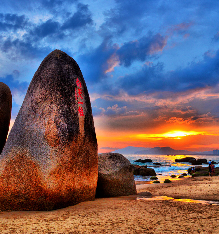 ·最有名的是刻有“天涯”和“海角”的两块巨石,它们一直被视为爱情的象征,也是三亚的标志性景观之一。