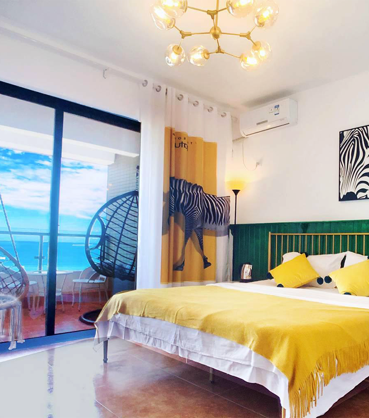 三亚WWW海景公寓位于大东海金茂海景花园小区内,近海花路,下楼就是大东海边,楼下还有药店、超市等,旁边就是海鲜城,各种饭店高、中、低档都有,生活十分便利。这里房型很多,有一室、两室、三室的都有,适合举家出游。房内是居家型的设计,厨房、厨具、客厅、冰箱、洗衣机、阳台等均有配置,可以自己下厨做饭;还可以一家人在客厅里聊天。阳台很大很宽敞,阳台上还有吊椅,坐在吊椅上吹吹海风,晒晒日光浴,喝喝茶,发发呆,还有那敞亮的风景,定能使你疲劳全消。这里的服务小哥也非常热情,在你入住时会在公寓楼下等着你,帮你提行李,告诉你周边哪里可以吃到海鲜,游玩的时候要注意什么,很贴心。