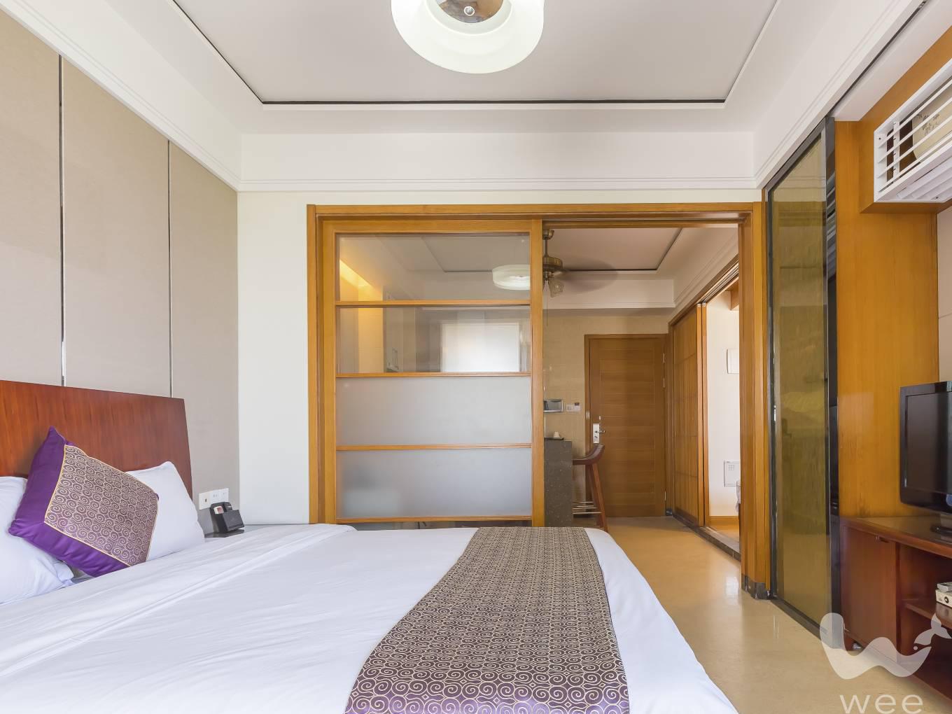 这里公寓式房间空调、冰箱、洗衣机、厨房等设施完备,旅游咨询及租车服务、精品超市等一系列精致配套设施,园区绿化环境非常的好,独立阳台视野非常的开阔,拥有海景,河景,园景为一体的度假型公寓。