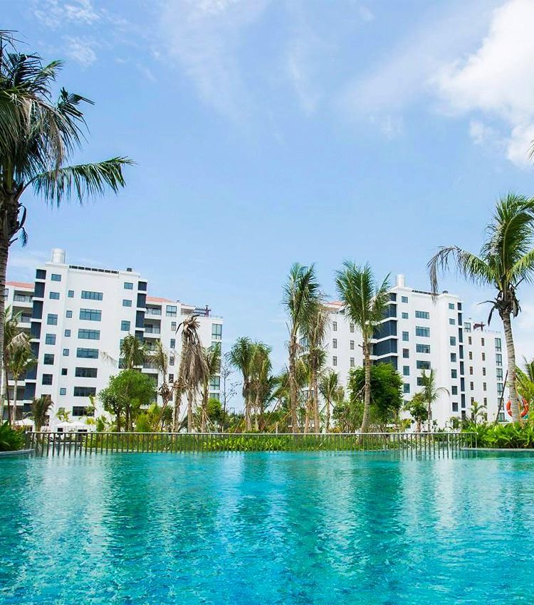 三亚海棠湾福海棠海景套房度假酒店位于风光怡人的三亚国家海岸一线海景的海棠湾,举目四周,座山面海,碧海蓝天;热带雨林环抱的沙滩绵延17公里,让您悦享海上日出、日落的绚丽美景观,毗邻南田温泉、蜈支洲岛、南湾猴岛等旅游胜地。酒店占地面积35656.08平方米,拥有风格典雅、温馨舒适的百余套海景套房,全部都配有开放式厨房可开伙,由六栋独立楼体组成。这里花园、沙滩、游泳池、特色餐厅、全日制餐厅、大堂吧、儿童乐园等设施为您带来方便快捷的度假体验,是家庭游、亲子游、团队会议等理想的选择。酒店还有过大型劳模团、团体活动组织经验,浪漫的婚礼策划,亲子游的酒店菜园采摘,完整的服务及配套让您的度假从这里开始吧。