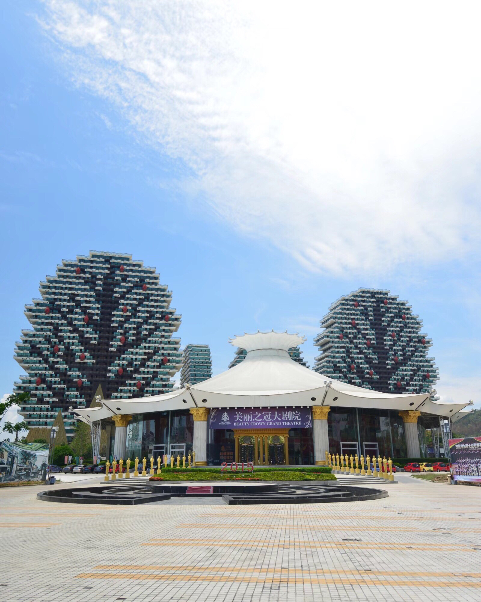 目前,美丽之冠已成为三亚著名的美丽门户和地标性建筑,包括会展表演及美丽博物馆两大功能区。通过主入口的喷泉走廊,拾级而上,利用美丽之冠主场馆的内廊大厅及三个陈列室设立的美丽博物馆向游人渐次展现世界小姐的丽姿魅影。