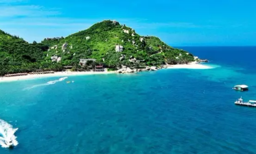 西岛一半是居民区,一半是旅游区,互不干扰,从码头坐船约 15 分钟到达岛上,岛屿离城市较远,海水污染较少。这里水清沙幼,海底生物丰富,相比蜈支洲岛的度高端大气上档次,西岛更像个小家碧玉,有秀美的山体、迷人的珊瑚礁,也有清澈的海水、婆娑的椰林和松软的海滩,各水上项目齐全,价格比蜈支洲岛便宜。