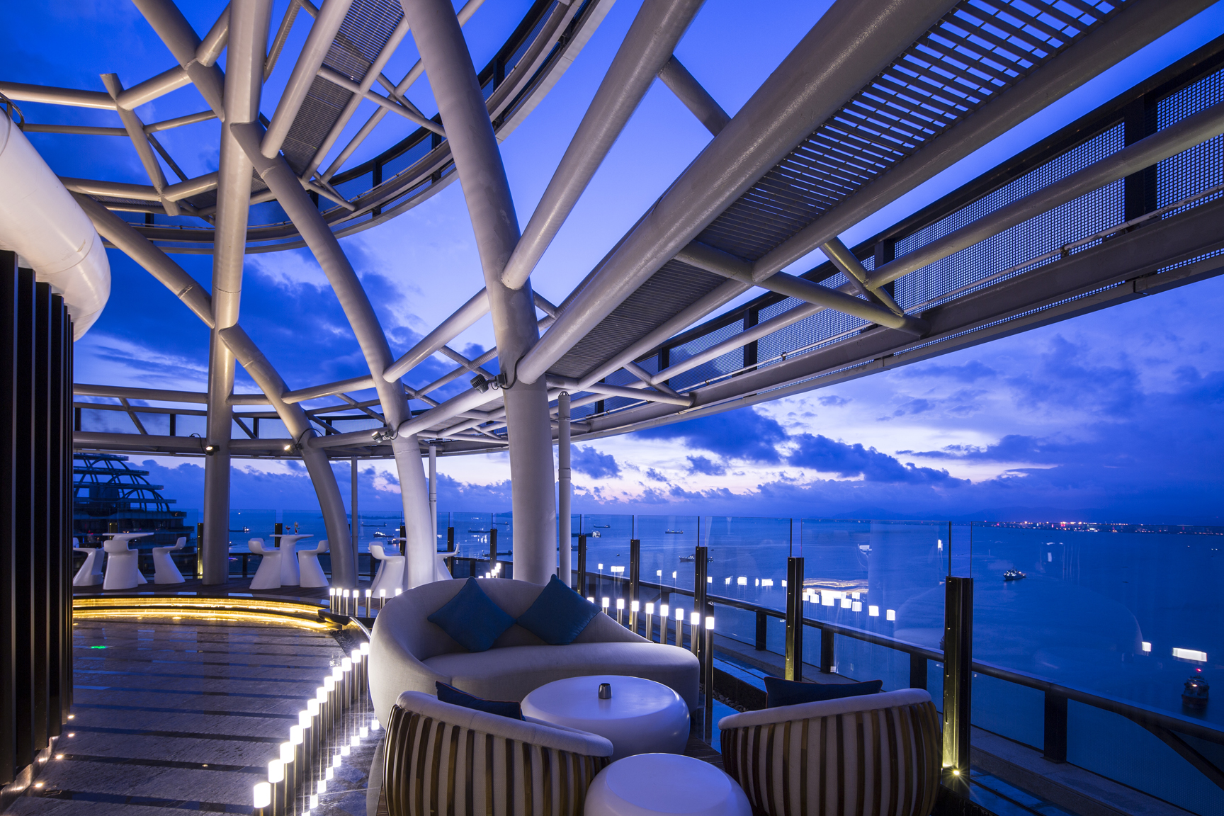 空中酒廊,位于凤凰岛酒店A座(海洋之月)33层,全景观设计,仿佛置身迪拜。这里白天有下午茶,晚上就是一个酒吧,还有歌手驻唱。空中酒廊能欣赏到360度无死角海景,无论是下午看夕阳,还是夜晚来听着音乐吹着海风看夜景,在此坐拥三亚全景,是很不错的体验,值得推荐!