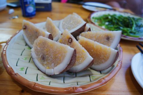 大家在各大加工店,或者当地的餐馆都能吃到这道椰子饭,尝一块还是不错的,各家价格不同,均价三四十元。