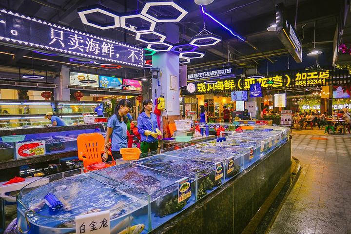 亚龙湾吃海鲜的地方还是非常多的,而奥特莱斯广场是首选。亚龙湾奥特莱斯海鲜广场不仅装修十分的豪华、环境优雅,而且一点也不嘈杂,让你吃海鲜的心情都会变得很好。