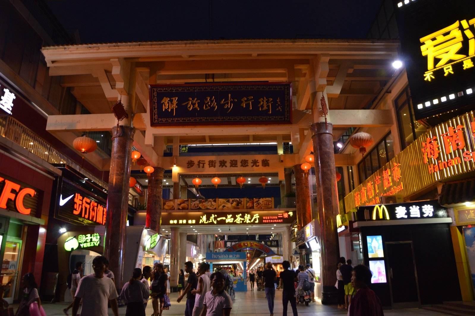 解放路步行街紧邻汽车总站,是市内第一条商业步行街。这条街道长约230米,汇集了众多珠宝首饰以及各类服装,可以买到海色的“岛服”。步行街内还建有专门的工艺品一条街,同时这里也是不少快餐店的聚集地。