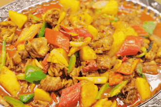 在海南,水果也可以入菜。当地盛产椰子、菠萝蜜、芒果、荔枝、菠萝、杨桃、木瓜等上百种热带瓜果,以及种类繁多的野菜,都成为了食材。如琼州椰子蟹、菠萝鸡、木瓜盅、芒果汁淋虾等等。