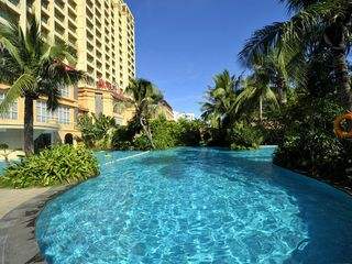 坐落在具有“椰梦长廊”美称的三亚湾路最繁荣地段,酒店临海而起,与全国闻名的三亚湾海滩融为一体,可以让您饱览三亚湾那无可比拟的海天一色,从酒店大堂可以直接步入三亚湾海滩,步行20米便可触摸到蔚蓝色的温暖海水,真切感受悠闲舒适的海宾情趣,茂盛翠绿的亚带植物环绕着清新亮丽的游泳池,更能满足宾客放松和休闲需要。