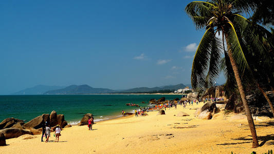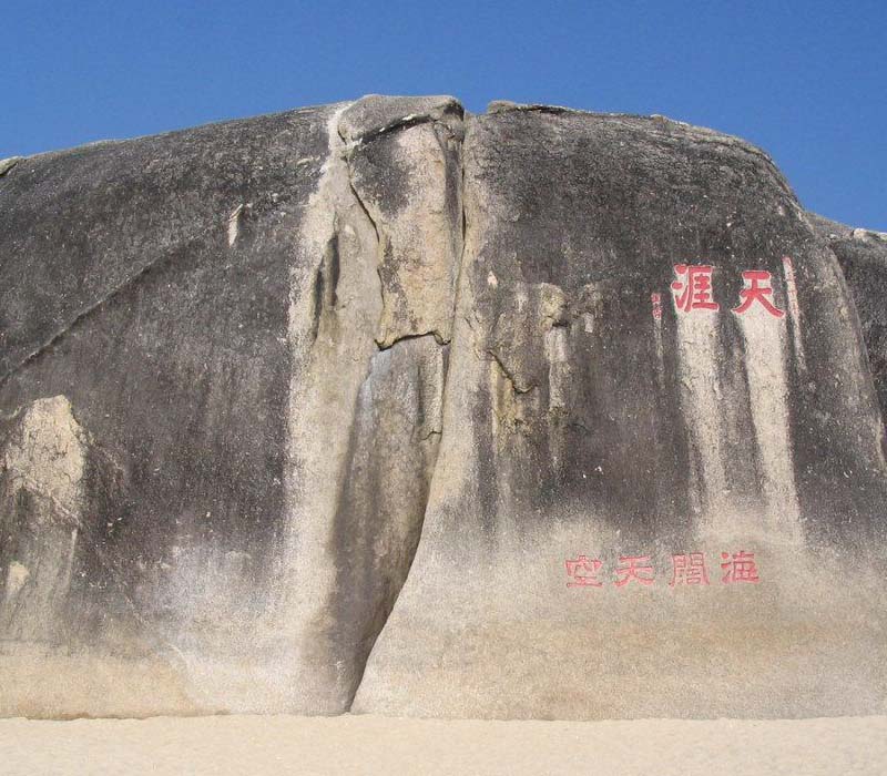 天涯海角游览区,位于三亚市天涯区,距主城区西南约23公里处,背对马岭山,面向茫茫大海,是海南建省20年第一旅游名胜,新中国成立60周年海南第一旅游品牌,国家AAAA级旅游景区。景区海湾沙滩上大小百块石耸立,很多岩石上刻着古今名人留下的字迹,“天涯石”、“海角石”、“日月石”和“南天一柱”突兀其间。最有名的是刻有“天涯”和“海角”的两块巨石,它们一直被视为爱情的象征,也是三亚的标志性景观之一。还有其他有名的石刻“南天一柱”和“日月石”,南天一柱又被称为“财富石”,日月石象征爱情。景区内的名人雕塑园、情侣树等特色景点也值得一看。