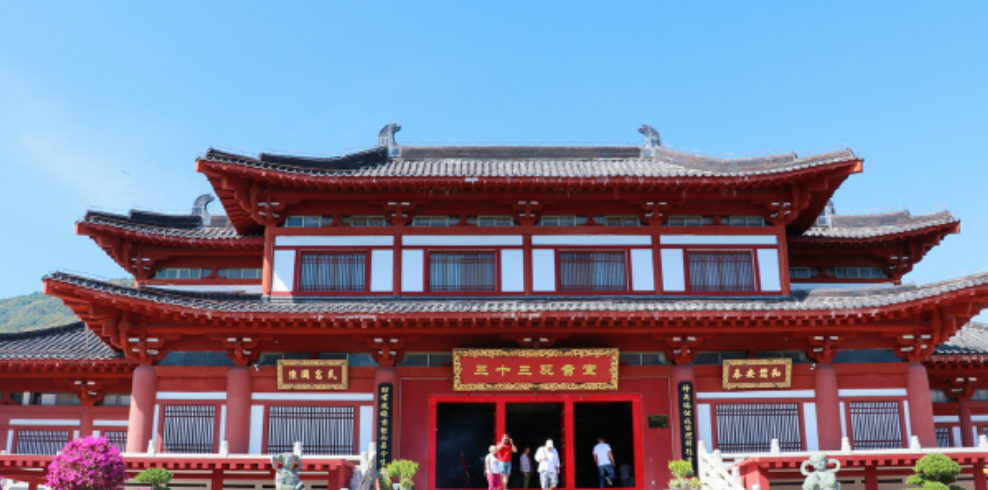南山寺是一座仿盛唐风格、居山面海的大型寺院。南山寺是已故中国佛教协会会长赵朴初亲临选址,经国家宗教局批准,于1995年11月11日奠基,1998年4月12日建成。现有仿唐建筑仁王殿、天王殿、钟楼、转轮藏、东西爬山廊、东西配殿、金堂等建筑群,总建筑面积5500㎡。整个建筑气势恢宏,为中国近五十年来新建的最大佛教道场,也是中国南部最大的寺院。