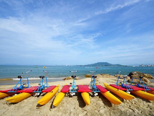 呆呆岛名气不如蜈支洲岛大,也正是因为如此,去的人相对较少,所以它才保持了原生态的模样与气息。海水很清,沙滩偏黄,山上坐观光车时看到的风景更美,总体来说还是值得一去。