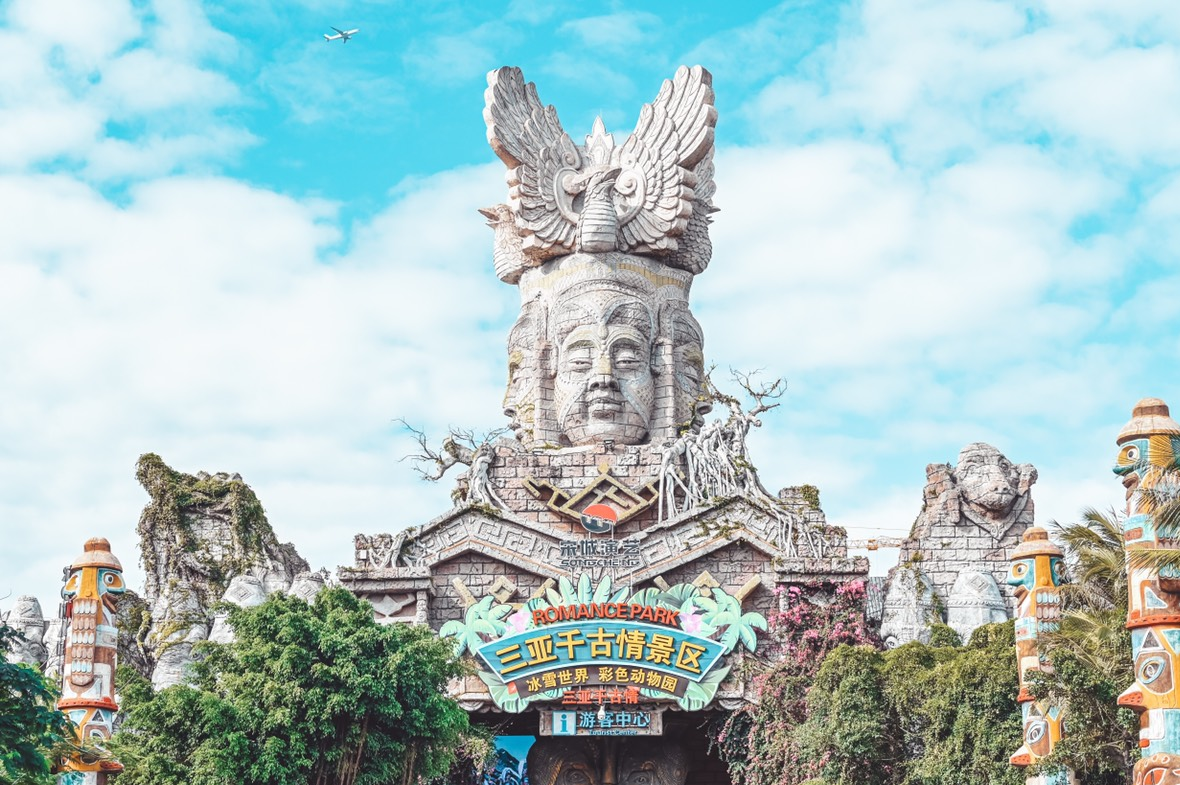 三亚千古情景区位于三亚市迎宾路333号三亚千古情景区,掩映在茂密的森林和鲜花丛中,有大型歌舞《三亚千古情》 、图腾大道、入口广场、爱情街、绣楼广场、崖州古街、千古情亲子乐园、清明上河图电影馆、戏水区、千古情广场、鬼域惊魂等数十个主题区。