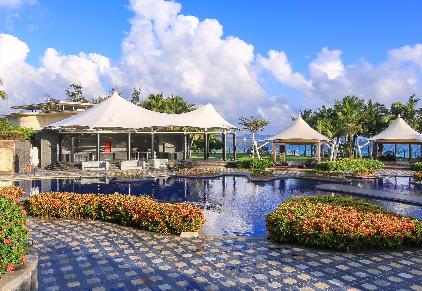 【泳池】:双层泳池高低分明,离海最近的泳池起身就能榻上沙滩