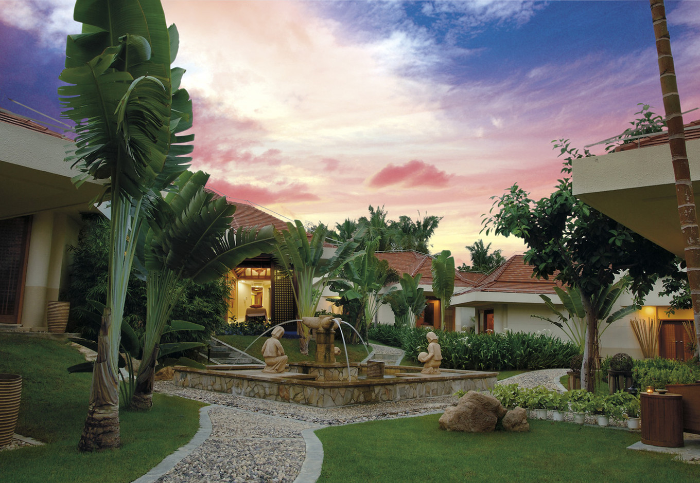 三亚的酒店以欧式和泰式为主,铂尔曼把泰缅主题发挥到了极致。酒店虽然不在海边,但优秀的设计造景让它自身就成为风景。园林精致,特色鲜明,置身酒店会令人有穿越时空的恍惚,好似来到《一千零一夜》中的东方古国。四处洋溢着印式高端SPA的舒适惬意,受到环境影响,人也会不由自主地放慢节奏,尽情释放疲劳。