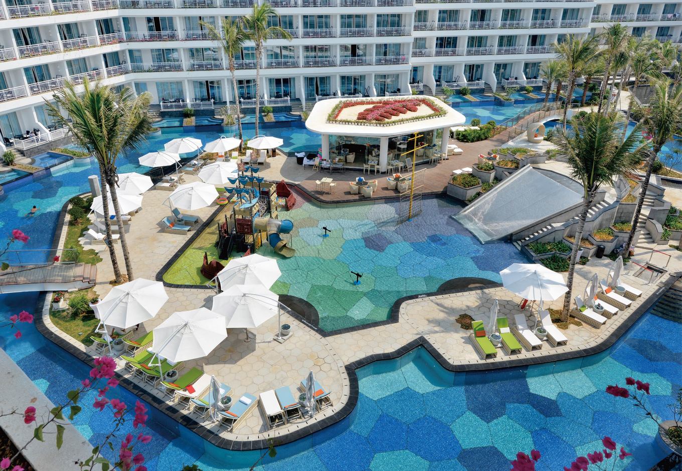 【泳池】:酒店泳池都是相连互串的,可以从头游到尾~儿童泳池里有简单的水上乐园