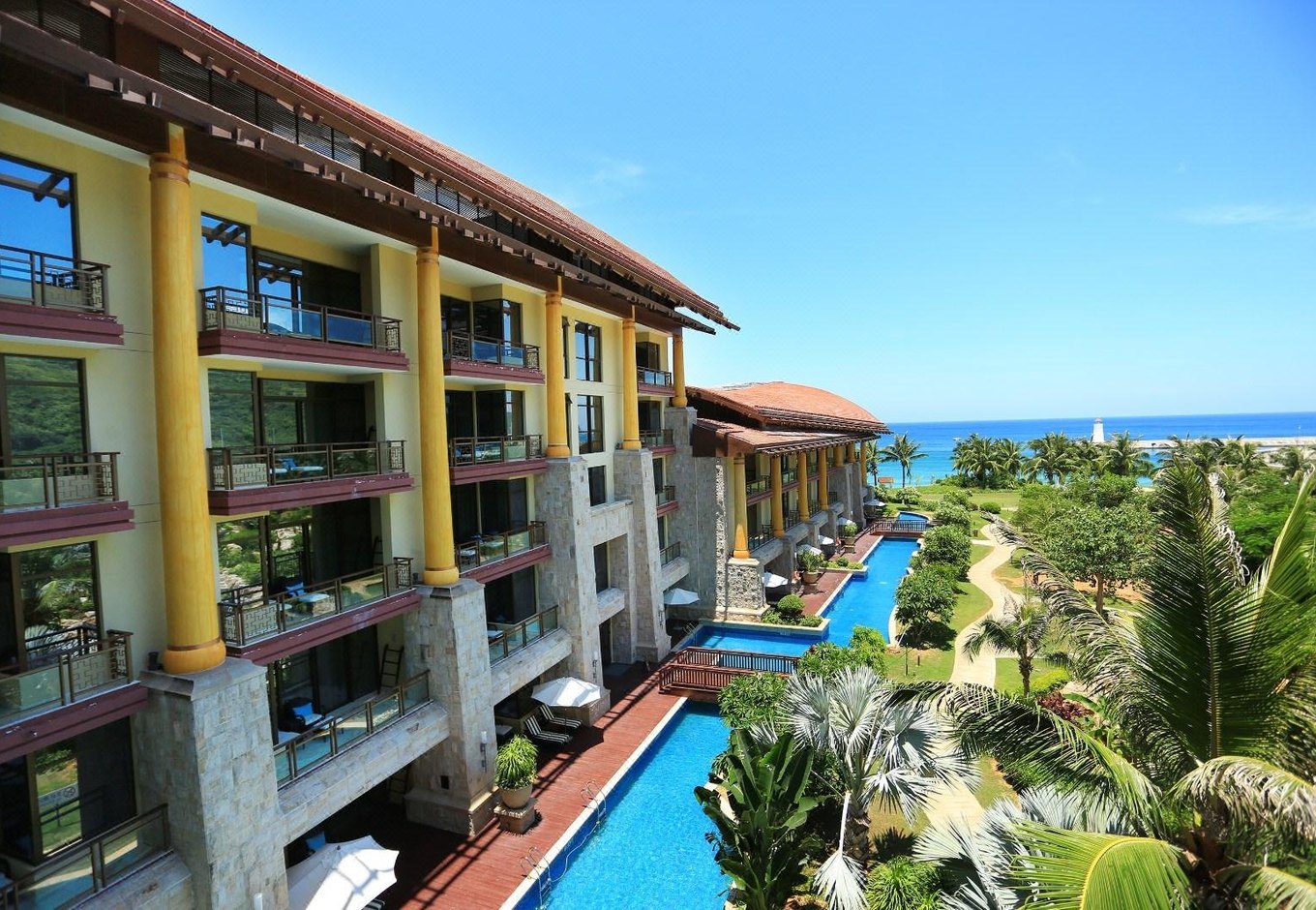 喜达屋集团旗下最奢华的品牌,各方面配置都在五星级以上,所以是超五星酒店。全球最高档酒店标杆之一。酒店配置有私家影院,和其他酒店罕有的私家码头和私人医生,处处突出高端定制的精致感。11年开业的瑞吉是亚龙湾最后一家高端酒店,也是仅剩的唯一还拥有真正私人海滩的一家。
