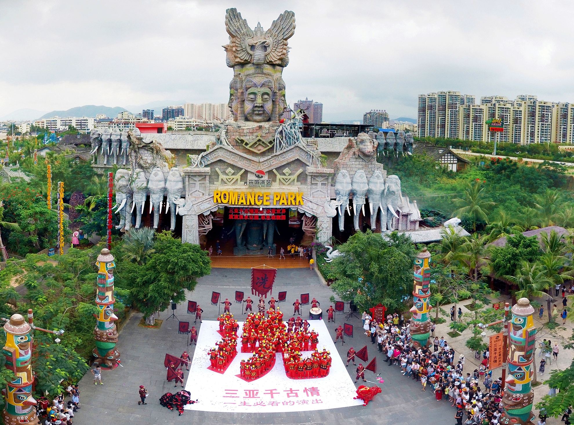 三亚千古情景区不在三亚的几个海湾,而是在市区北面,迎宾路上。千古情景区内有大型歌舞《三亚千古情》 、图腾大道、入口广场、爱情街、绣楼广场、崖州古街、千古情亲子乐园、清明上河图电影馆、戏水区、千古情广场、鬼域惊魂等数十个主题区。