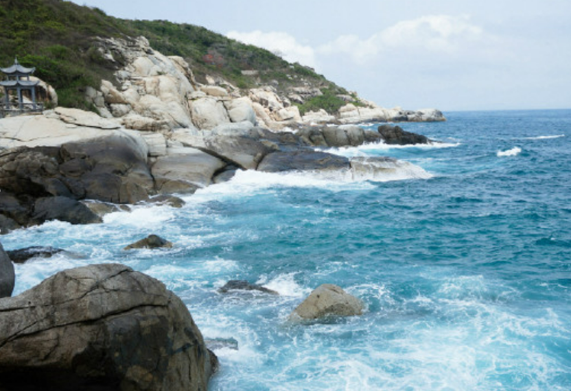 蜈支洲岛的沙滩上有很多小珊瑚,不是装饰品的那种,是一碎段,扎脚。暗礁也多,所以游泳区域只限在很小的一块,人多得不得了。即使是游泳区,还是有些扎脚的,可别脱了衣服就冲向大海。