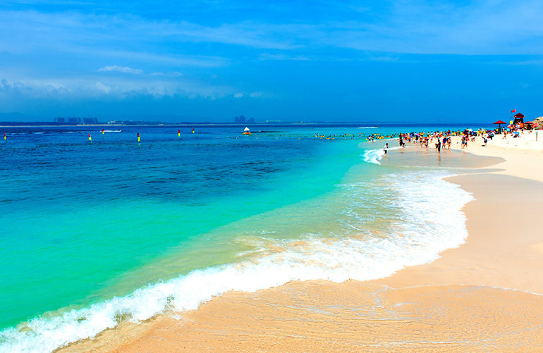 蜈支洲岛海滨浴场位于蜈支洲岛上的西北角,这里拥有白净绵软的沙滩,是岛上唯一适合下海游泳的地方,也被人们称为白沙滩。