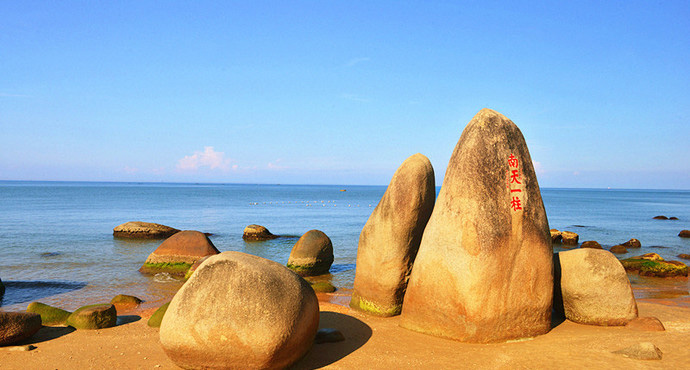 天涯海角最象征爱情的就是爱情石了,“爱情石”坐落在天涯海角大门正对面的海上,两块石头像“日”、“月”重叠交叉,心心相印,日月相伴,朝暮相随。它与前方爱情广场上的天涯海角星遥相辉映,集日月之精华、天地之灵气,演绎着陪你到天涯海角,爱你到海枯石烂的浪漫爱情故事。