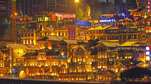 18:00-23:00(夏季开灯时间会推迟)。洪崖洞由吊脚楼和仿古商业构成,整个建筑群依山而建,错落有致,尤其是夜景,与日本动漫大师宫崎骏“千与千寻”作品中的酒屋相似度90%。吊脚楼属于栏式建筑,依山就势,远远看去,房屋构架简单,开间灵活、形无定式。随坡就势的吊脚楼群,形成线性道路空间,吊脚楼的下部架空成虚,上部围成实体。洪崖洞坐拥城市旅游景观、商务休闲景观和人文景观于一体,是重庆历史文化的见证和重庆城市精神的象征。