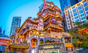 “重庆十大文化符号”之一,位于重庆渝中区渝中半岛的嘉陵江与长江交汇处,是两江枢纽,也是重庆最大的水路客运码头。朝天门曾是重庆十七座古城门之一,三峡游轮、观光游船和去洋人街的渡轮都从这出发。 朝天门的夜景也是非常美的,晚上灯光都开了,特别漂亮,眼前是灯火辉煌的码头,还有花枝招展的游船穿梭来去。并且这里也是重庆公路“零公里”点标志将设在朝天门广场。
