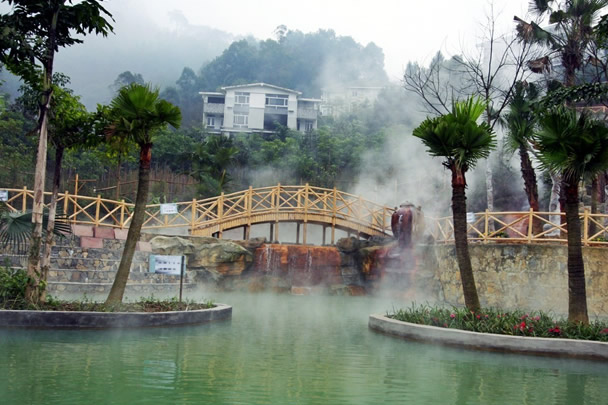 重庆统景温泉风景区,位于重庆市渝北区东部御临河畔,距离重庆市区1小时。景区占地300余亩,有天然温泉25处,日用量可达3万吨,平均温度35-52度,高可达62度,有涌沙泉、悬挂泉、珍珠泉、地震增生泉等多种温泉类型,是全国较大、较集中的温泉群。景区内统揽山、水、林、泉、峡、洞、瀑、天池、小岛、古寨、鹰舞、猿啼诸景,被历代文人墨客盛赞为“武陵仙境”。