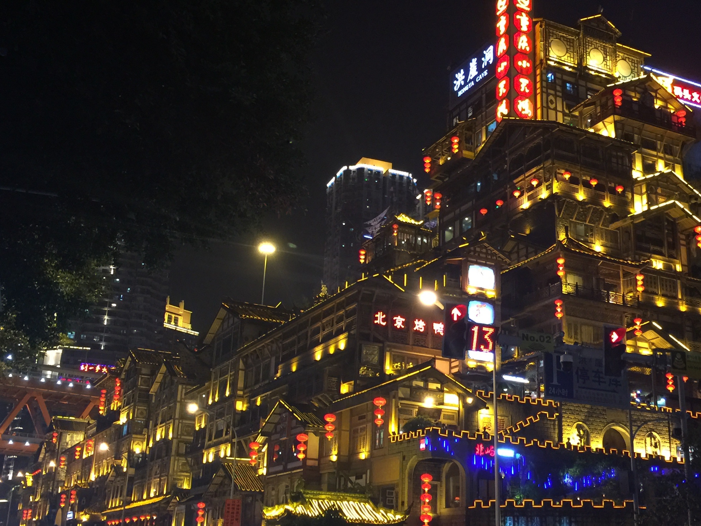 洪崖洞位于长江、嘉陵江两江交汇的滨江地带,依山而建,沿江而立,一层顶层均可看江景。