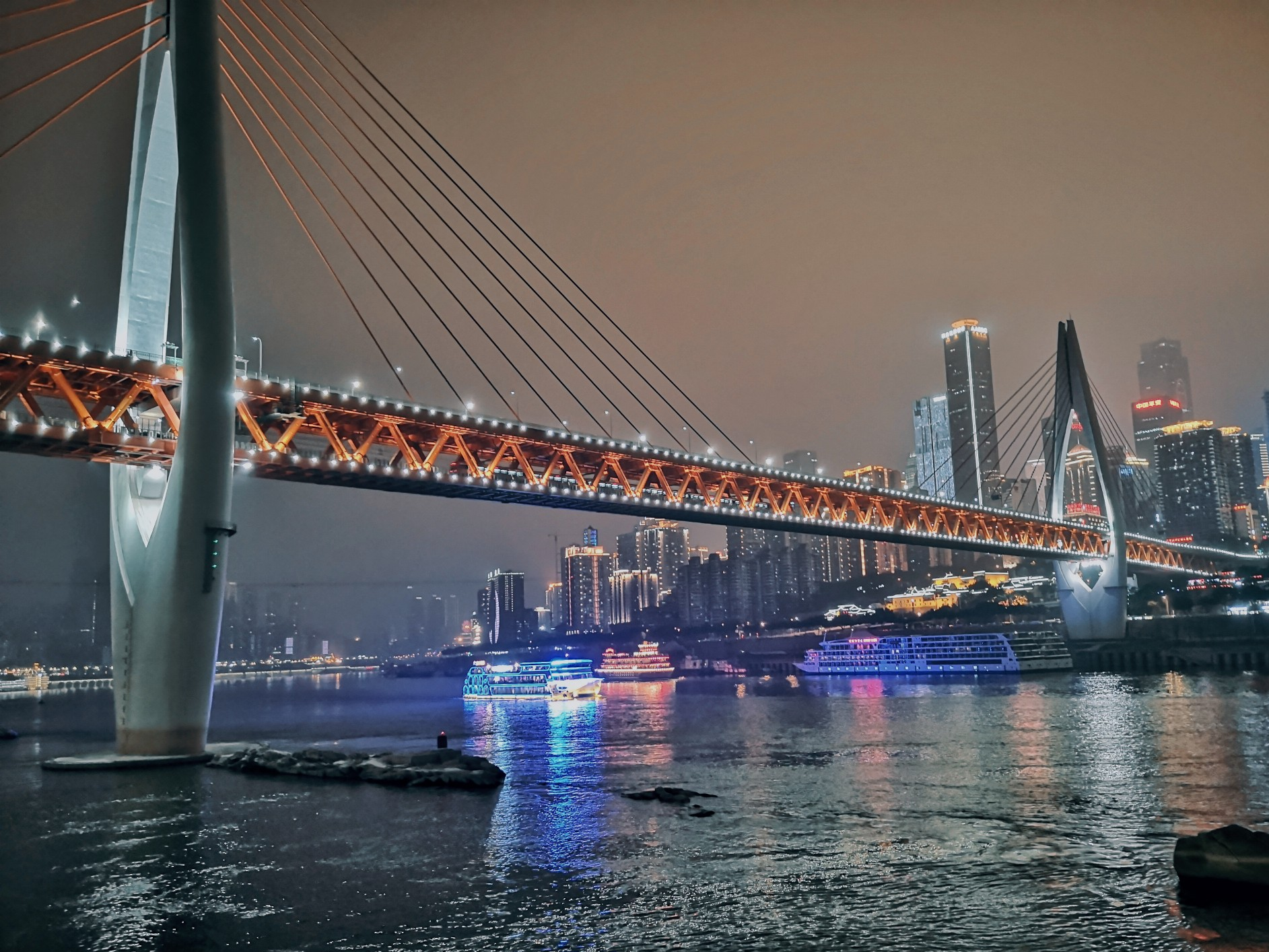 轨道交通2号线较场口——大坪段(约30分钟)都可以看到江景,旅途中的江景也是别有一番风味。