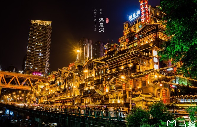推荐理由:从千厮门大桥走到洪崖洞,下到马路边,这一块需要一个广角才能拍全整个洪崖洞的景,这里也被小伙伴们誉为现实版的千与千寻。可以将车轨和洪崖洞一起收进去。