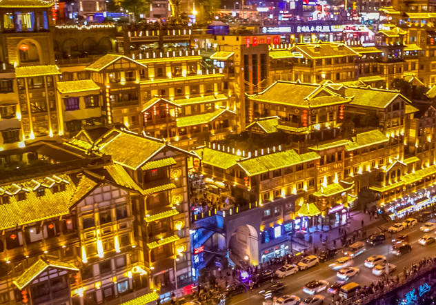 洪崖洞,原名洪崖门,是古重庆城门之一,国家4A级旅游景区,位于重庆市解放碑沧白路,地处长江、嘉陵江两江交汇的滨江地带,是兼具观光旅游、休闲度假等功能的旅游区。2006年,由重庆市政府总投资3.85亿元兴建而成。主要景点由吊脚楼、仿古商业街等景观组成。建筑面积4.6万平方米。洪崖洞是重庆市重点景观工程。