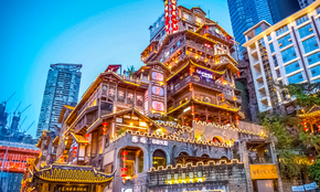推荐景点:动感酒吧街、天成巷巴渝风情街、盛宴美食街。洪崖洞民俗风貌区是逛山城老街、观赏两江风光、品尝当地美食的好去处。洪崖洞商业街位于渝中区沧白路,长江、嘉陵江两江交汇的滨江地带,以具有巴渝传统建筑特色的“吊脚楼”为主体,依山就势,沿江而建。