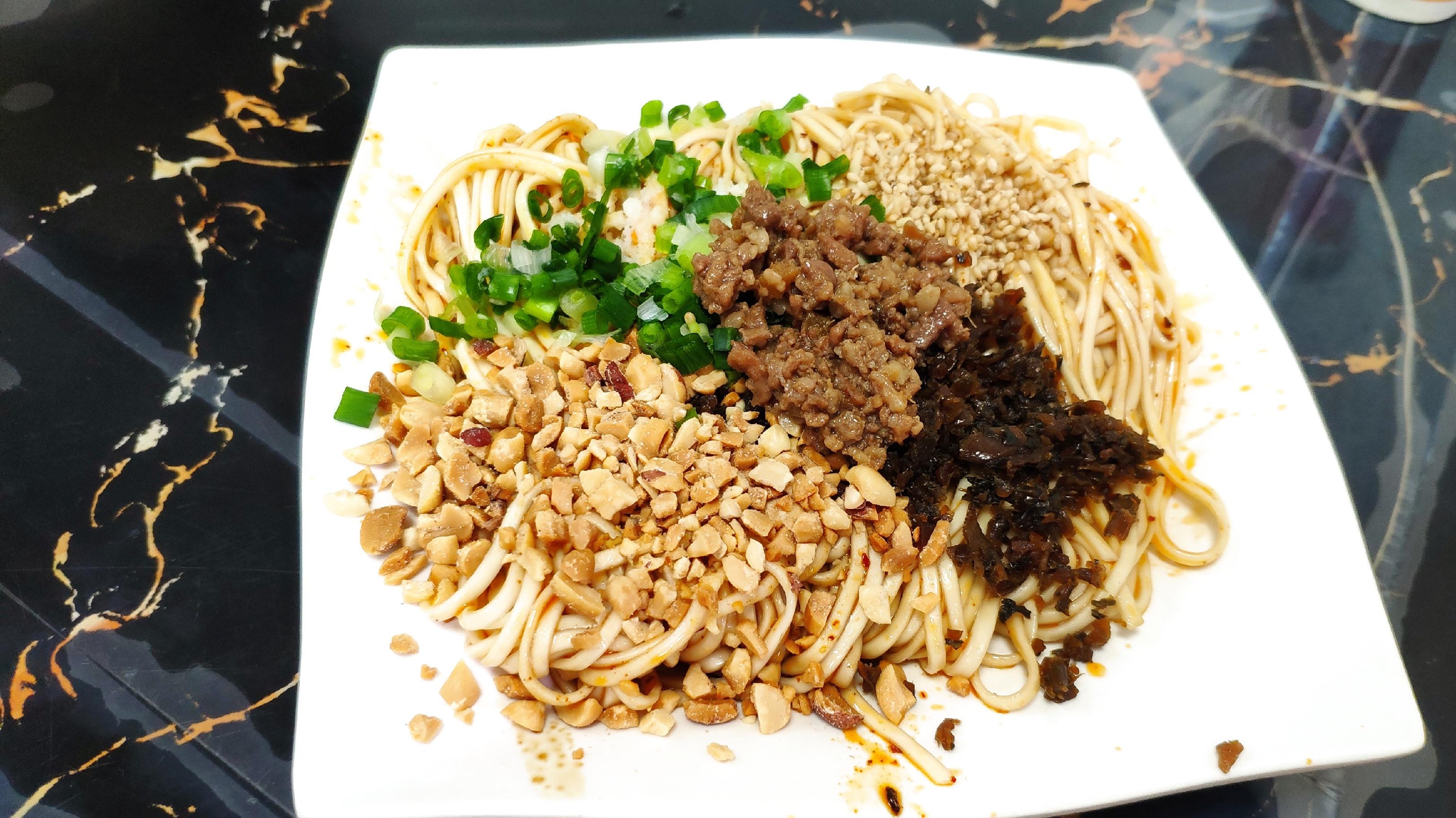 豌杂面是重庆市的一种特色小吃,属于川菜系;该菜品以豌豆与杂酱为主料,配以葱姜蒜为辅料制作而成,口感润滑,豌豆的软糯与面条的劲道以及杂酱的香甜,令人回味无穷。