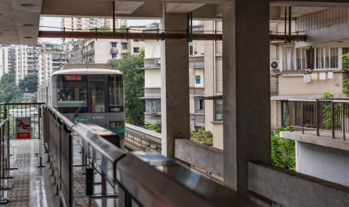 李子坝轻轨站。由于地形原因,轻轨需要穿越这里一座商住楼的6-8层,是国内第一座与商住楼共建共存的高架车站,因为列车“半空穿楼”的奇特景象,也让李子坝轻轨站成为新晋的“网红车站”,爆红网络。
